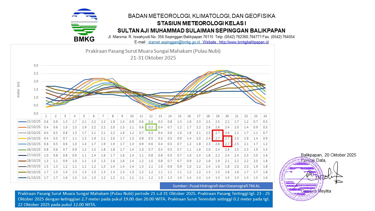 Hal ini menyusul prakiraan cuaca dari BMKG Stasiun Meteorologi Kelas I SAMS Sepinggan Balikpapan yang memprediksi hujan dengan intensitas sedang disertai pasang air laut tinggi dalam periode tersebut.