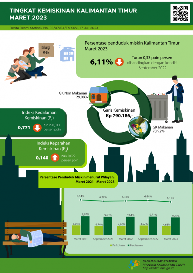 “Jumlah penduduk miskin pada Maret 2023 sebesar 231,07 ribu orang, menurun 11,23 ribu orang terhadap September 2022 dan dibandingkan tahun sebelumnya turun 5,18 ribu orang terhadap Maret 2022,” ungkap Kepala BPS Kaltim, Yusniar Juliana Nababan dalam keterangan resminya, Senin (17/7/23).