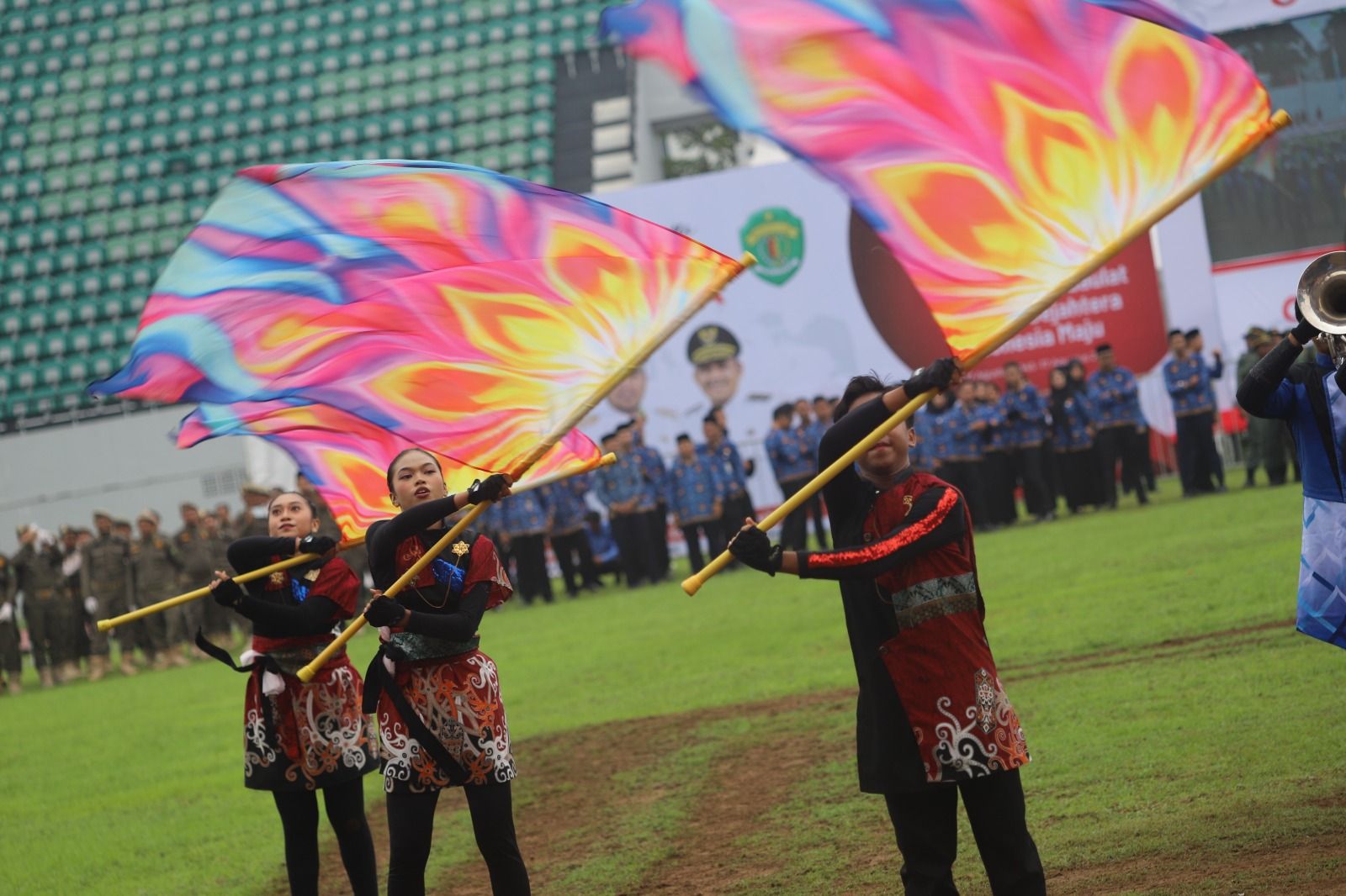 Keempat grup tersebut tampil memukau lewat formasi barisan yang rapi, kostum berwarna mencolok, serta lantunan musik penuh semangat. Aksi mereka berhasil membangkitkan rasa nasionalisme sekaligus menghadirkan suasana perayaan yang atraktif.