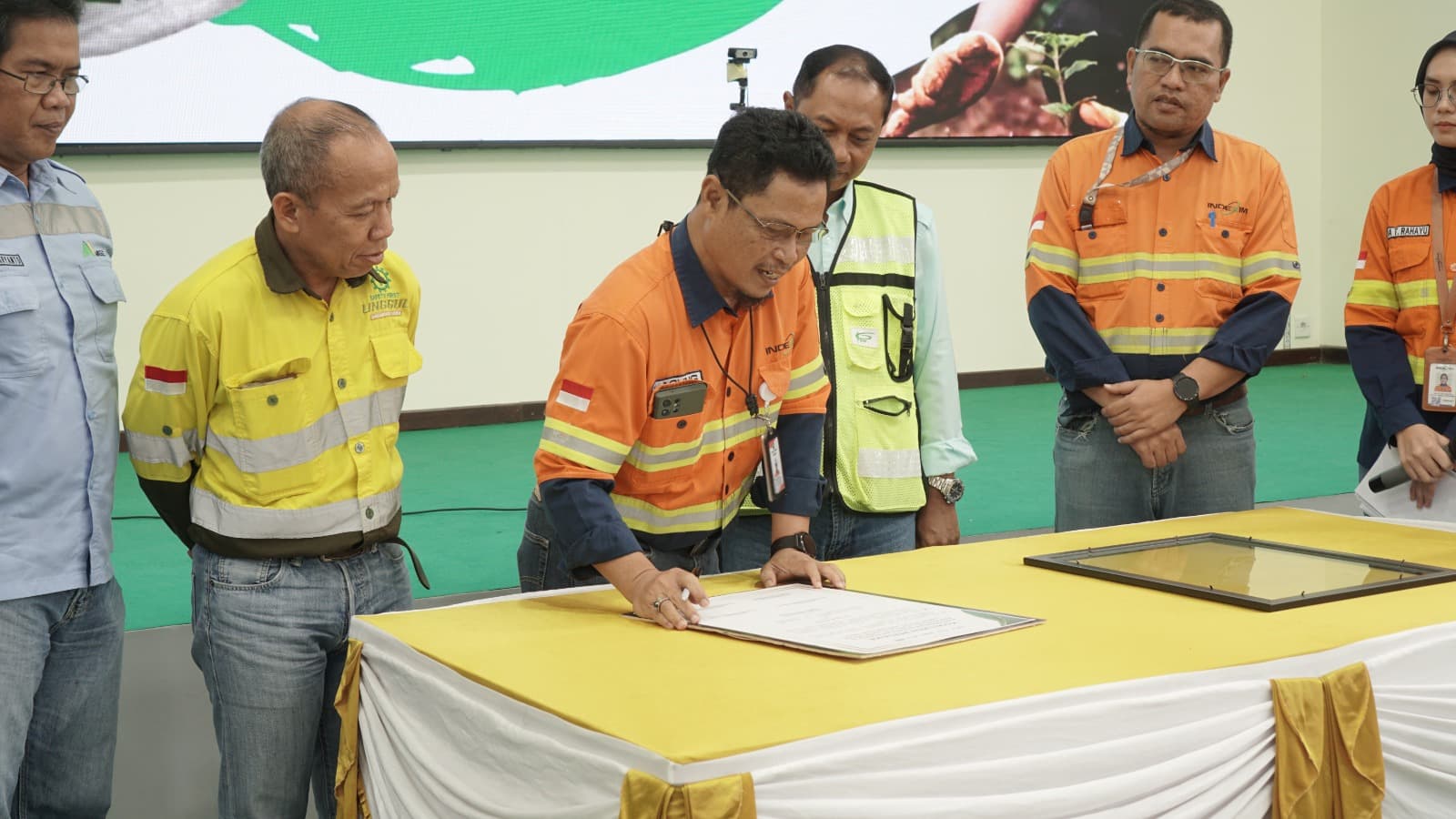 Acara diawali dengan penandatanganan komitmen bersama pengurangan pemakaian plastik dan pengelolaan sampah plastik oleh manajemen PT Indexim Coalindo dan mitra kerja.