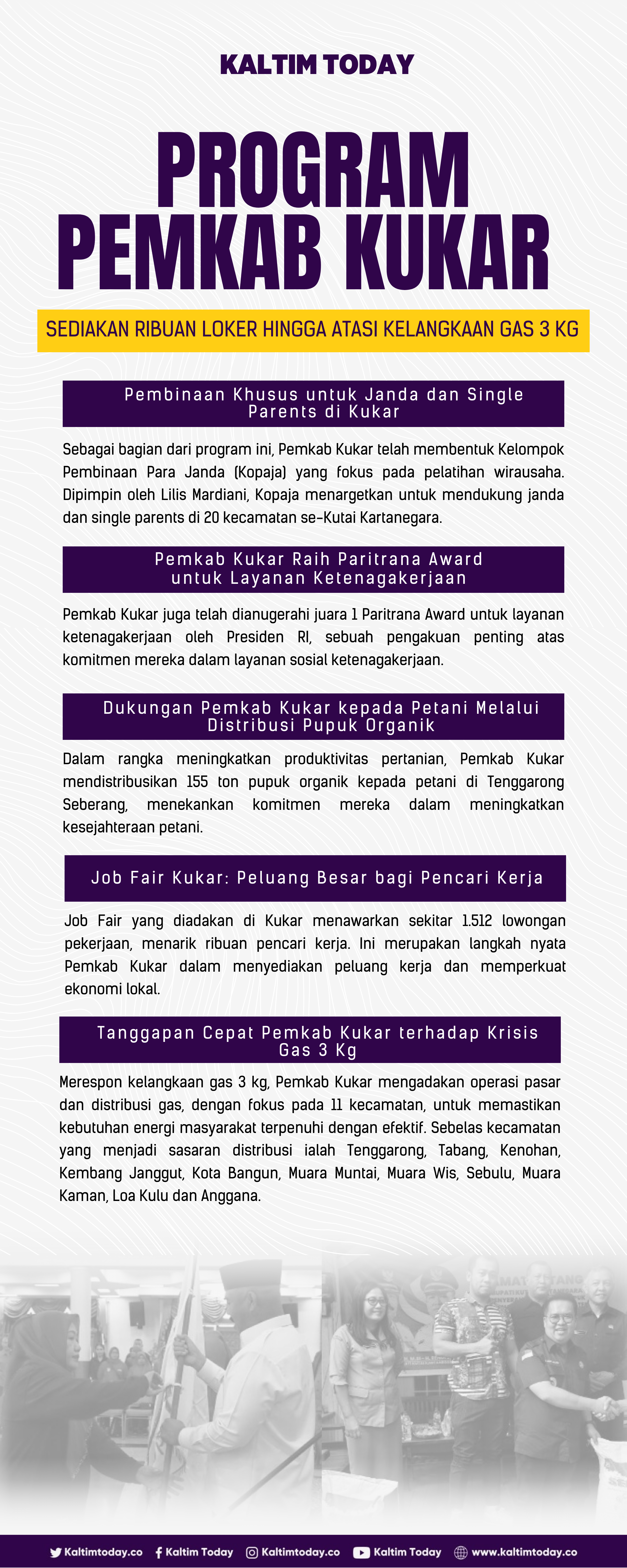 Sebagai bagian dari program ini, Pemkab Kukar telah membentuk Kelompok Pembinaan Para Janda (Kopaja) yang fokus pada pelatihan wirausaha. Dipimpin oleh Lilis Mardiani, Kopaja menargetkan untuk mendukung janda dan single parents di 20 kecamatan se-Kutai Kartanegara.