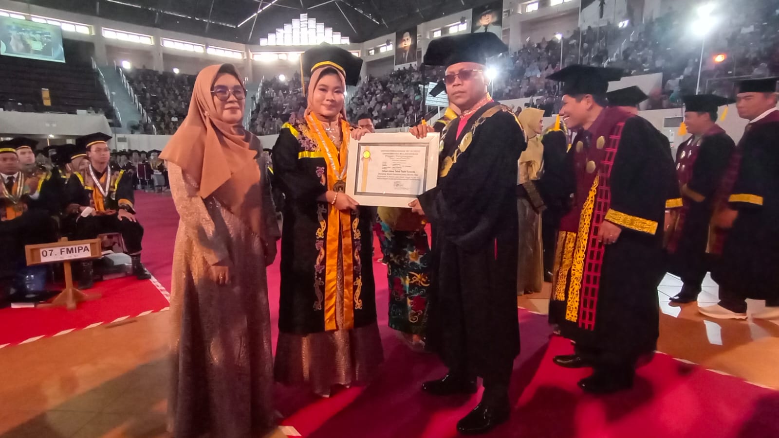 Lalu untuk di Program Sarjana, Muhammad Fitrah dari Prodi Ilmu Pemerintahan jadi lulusan terbaik. IPK yang didapat mencapai 3,99 dan masa studi 3 tahun 9 bulan. Sedangkan untuk Program Profesi, lulusan terbaik diraih oleh Dellaitgilbert Farrelin dari Prodi Profesi Apoteker dengan IPK 3,88 dan masa studi 1 tahun 6 bulan.