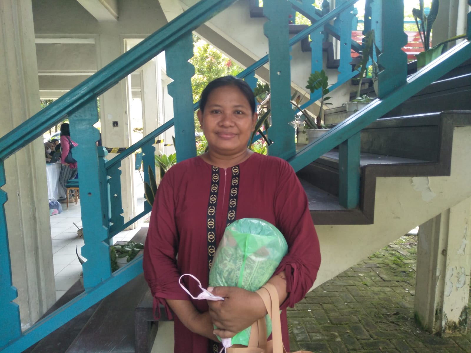 Wanita paruh baya tersebut hadir bersama ibunya. Menurut Dewi, jika ada acara seperti itu lagi, ia akan datang lagi untuk membeli baju.