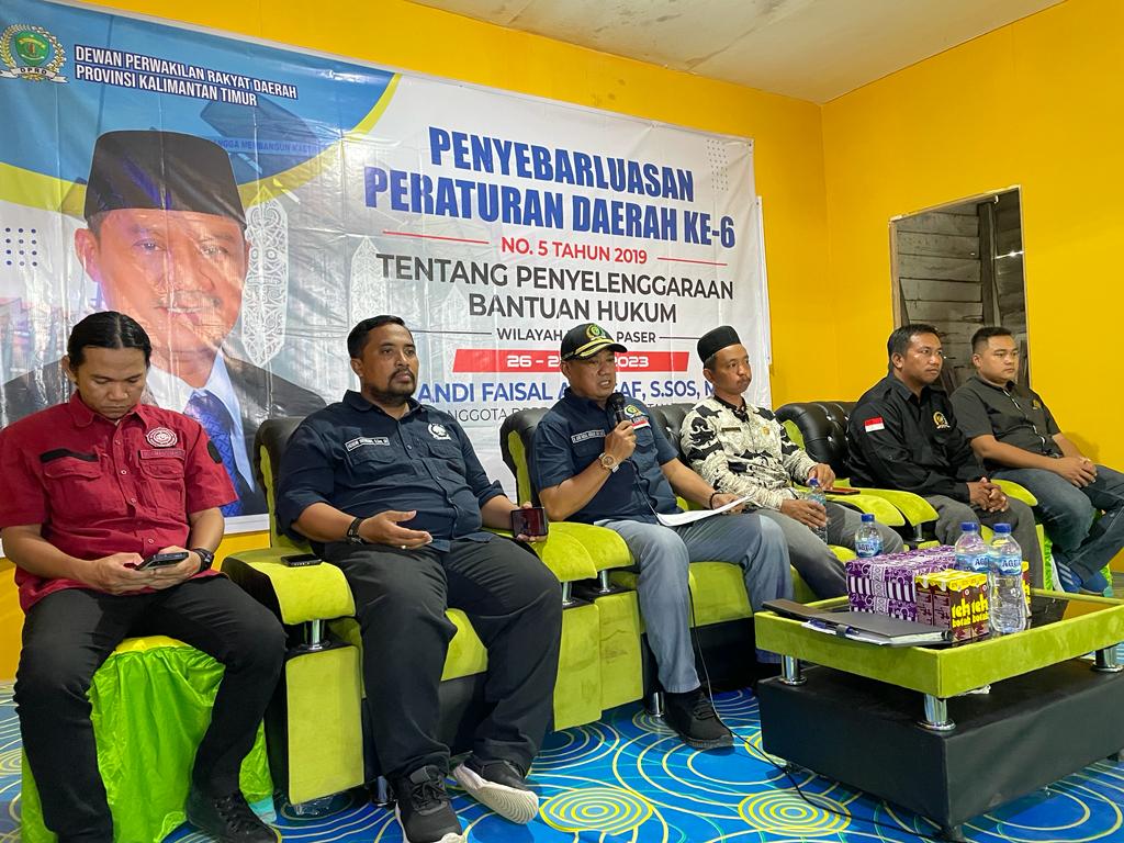 Demi memastikan keadilan dapat diraih semua kalangan, termasuk masyarakat miskin, Anggota DPRD Kaltim Andi Faisal Assegaf, kembali menggelar Penyebarluasan Peraturan Daerah Nomor 5 Tahun 2019 tentang tentang Penyelenggaraan Bantuan Hukum. Kegiatan digelar di Desa Teluk Waru, Kecamatan Long Ikis, Paser, Sabtu (27/5/2023).