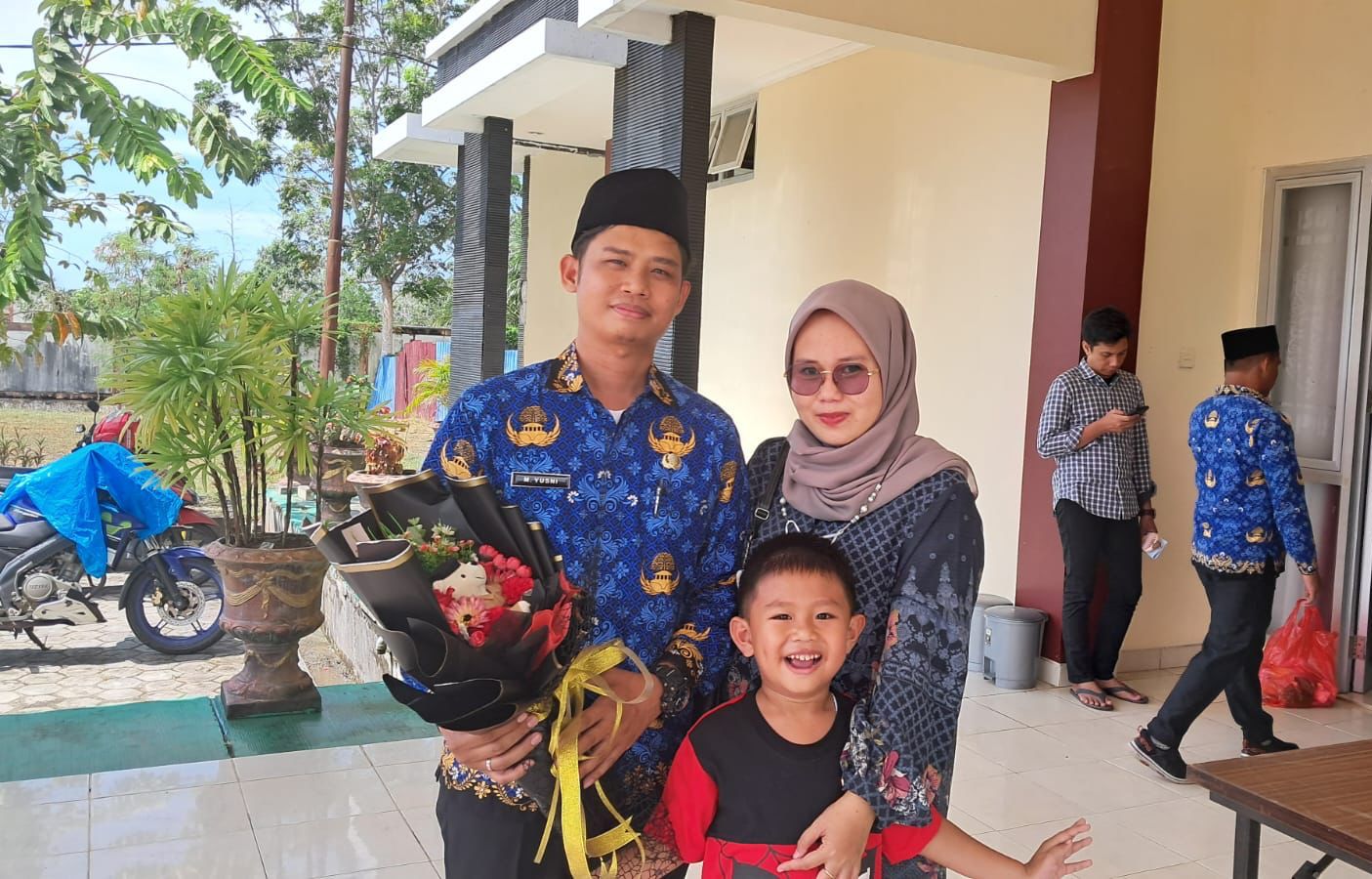 Muhammad Yusni masih memegang erat amplop coklat yang berisi SK PNS miliknya. Sambil mengabadikan momen emosional tersebut melalui ponselnya, mereka terlihat sangat bahagia.