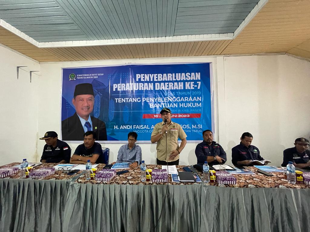 Kaltimtoday.co, Paser - Anggota DPRD Kaltim Andi Faisal Assegaf kembali menggelar Penyebarluasan Peraturan Daerah Nomor 5 Tahun 2019 tentang Penyelenggaraan Bantuan Hukum. Kegiatan ini digelar di Desa Tepian Batang, Kecamatan Tanah Grogot, Paser, Sabtu (17/6/2023).