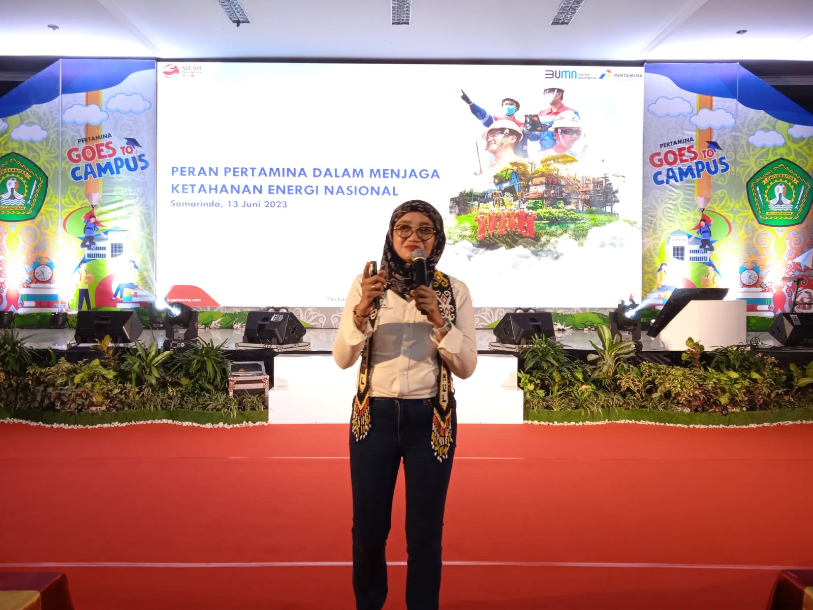 Sr. Manajer External Communication & Stakeholder Relations Pertamina Hulu Energi, Eviyanty Rofraida membeberkan alasan Unmul dijadikan tempat penyelenggaraan "Pertamina Goes To Campus".